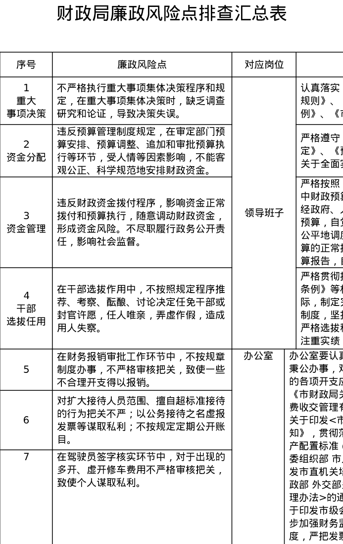 财政局廉政风险点排查汇总表