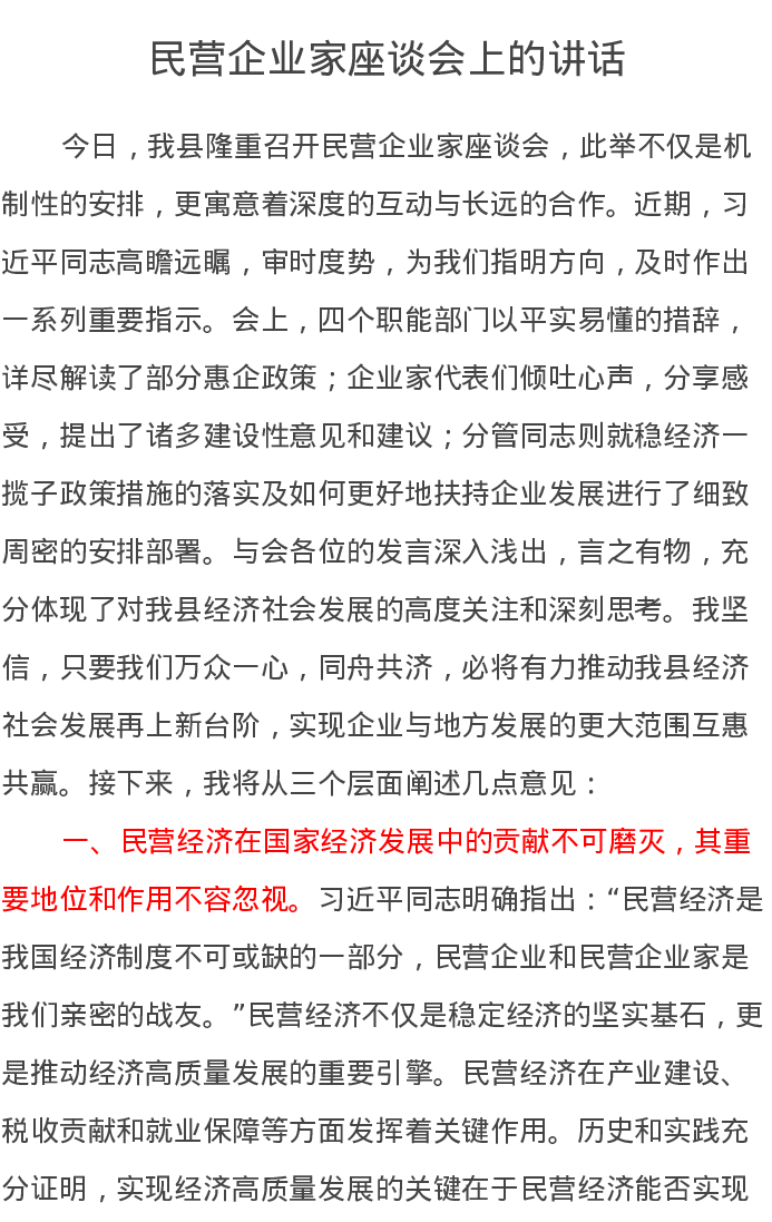 民营企业家座谈会上的讲话