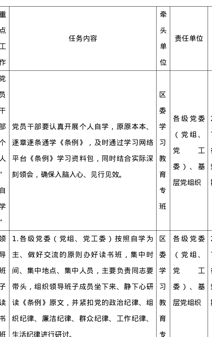 2024年区级党纪学习教育任务清单表(1720字)
