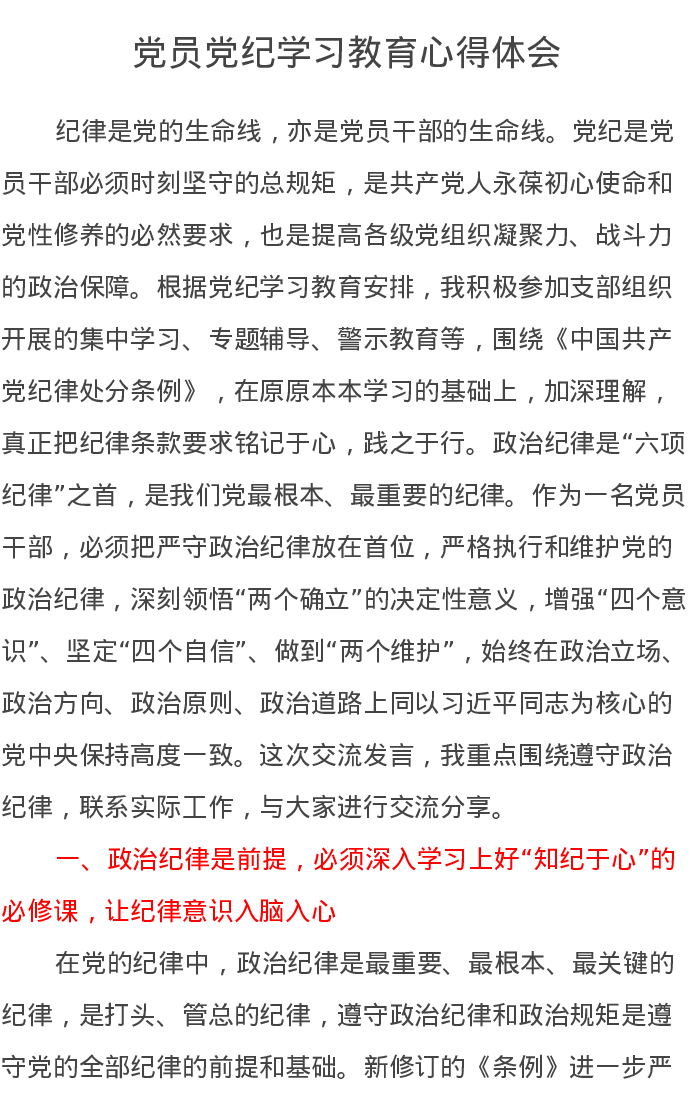 党员党纪学习教育心得体会