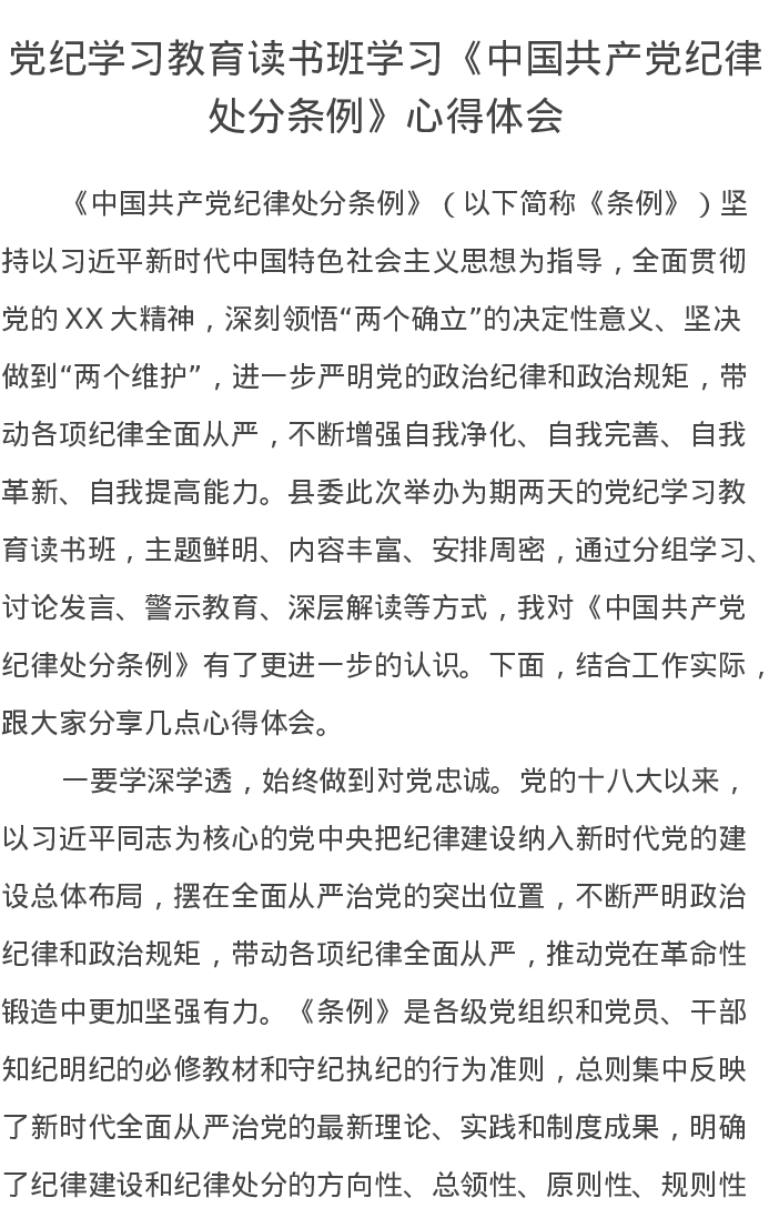 党纪学习教育读书班学习《中国共产党纪律处分条例》心得体会13