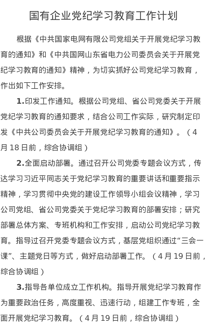 国有企业党纪学习教育工作计划