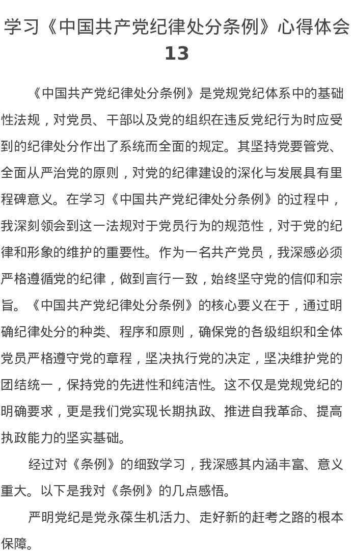 学习《中国共产党纪律处分条例》心得体会13