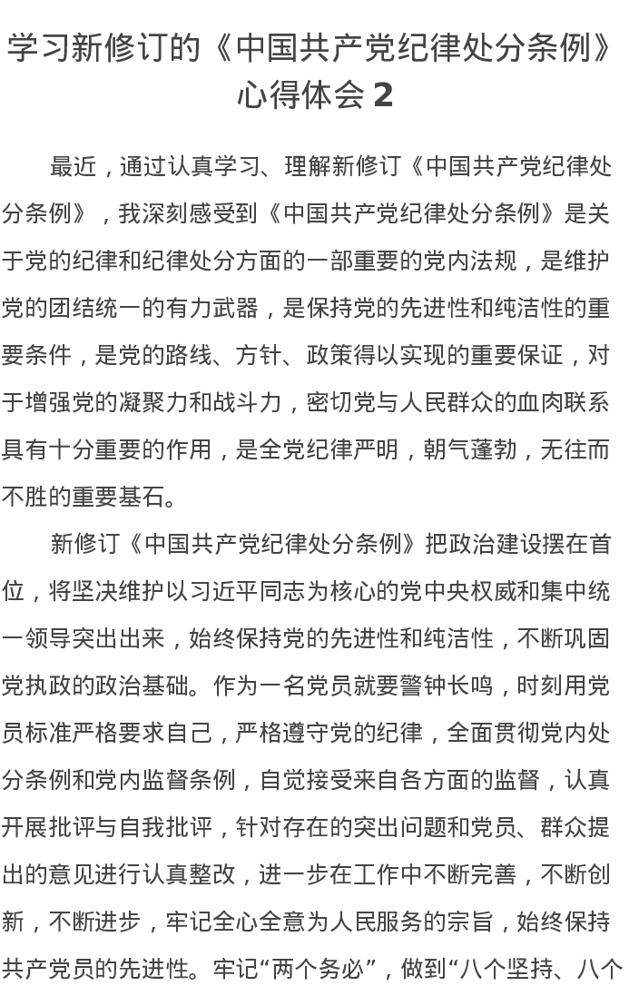 学习新修订的《中国共产党纪律处分条例》心得体会2