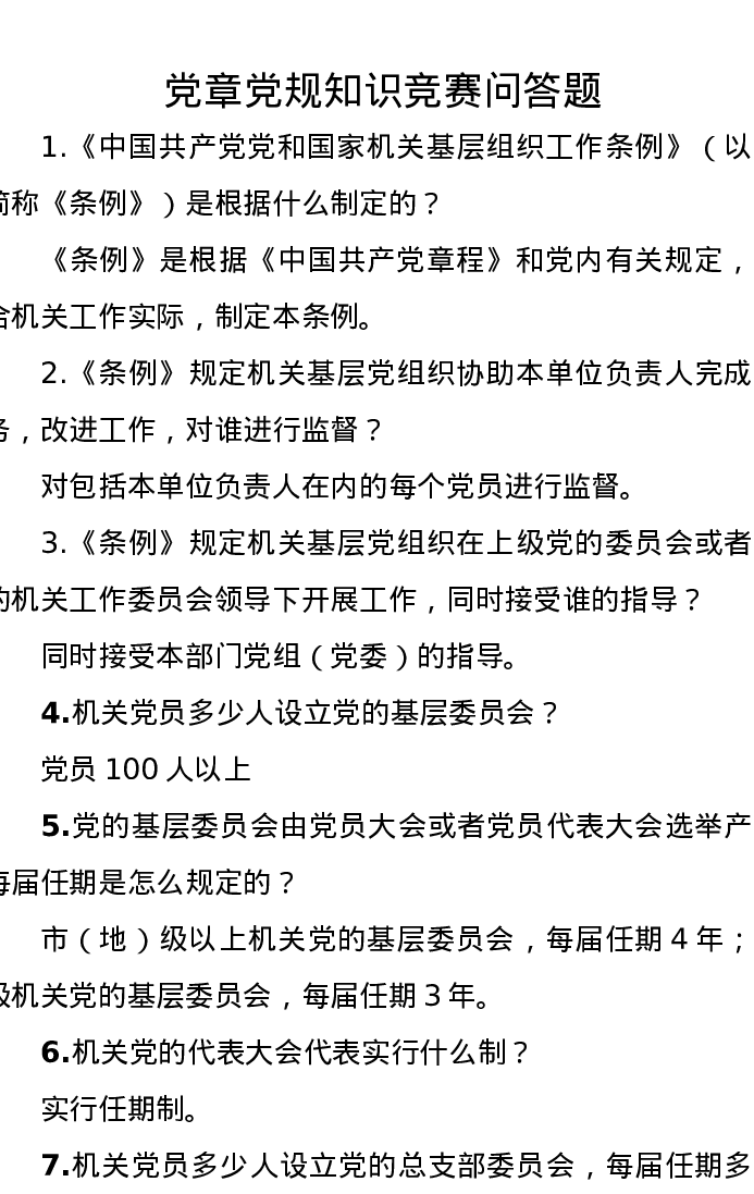 党章党规知识竞赛问答题