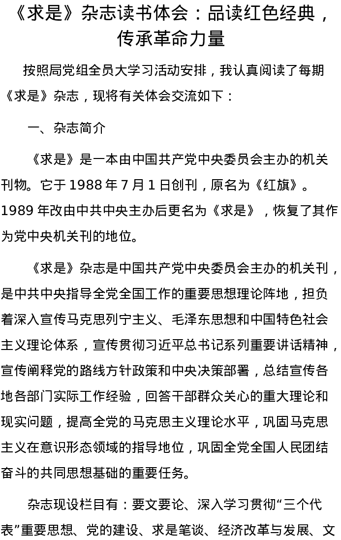 《求是》杂志读书体会:品读红色经典,传承革命力量