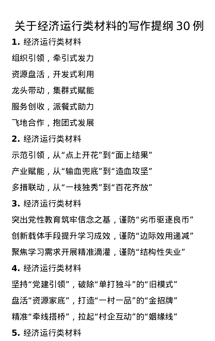 关于经济运行类材料的写作提纲30例