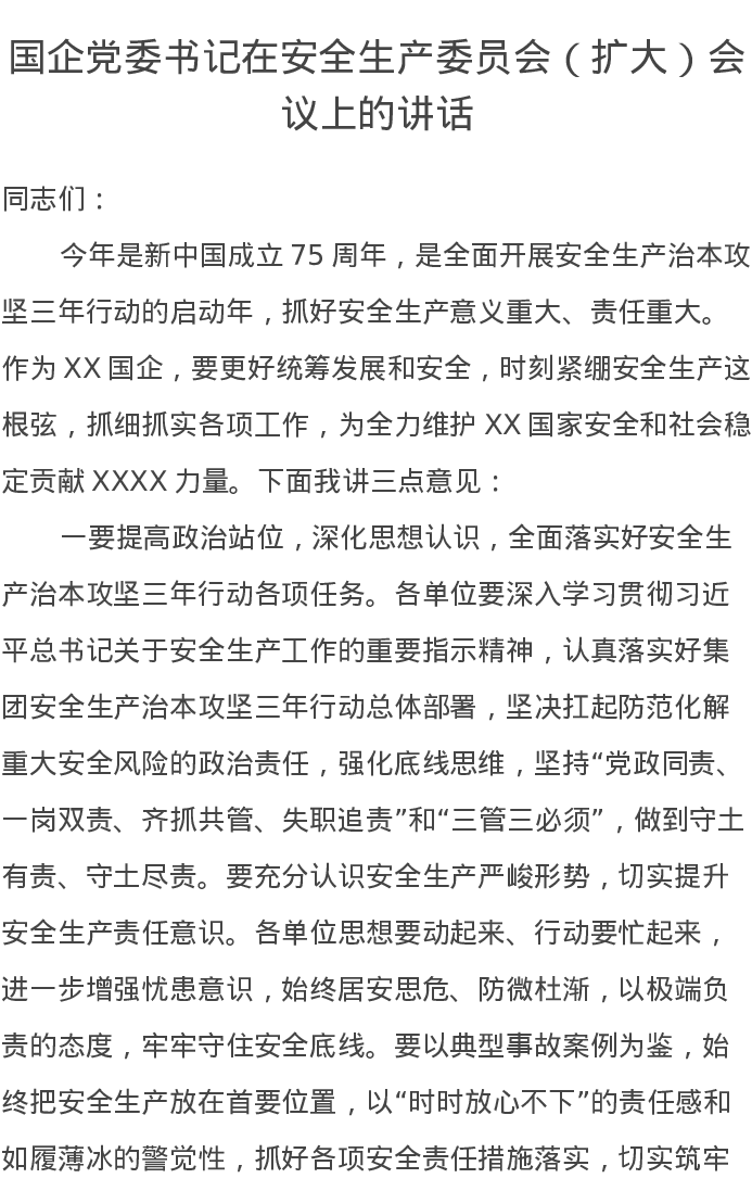 国企党委书记在安全生产委员会(扩大)会议上的讲话