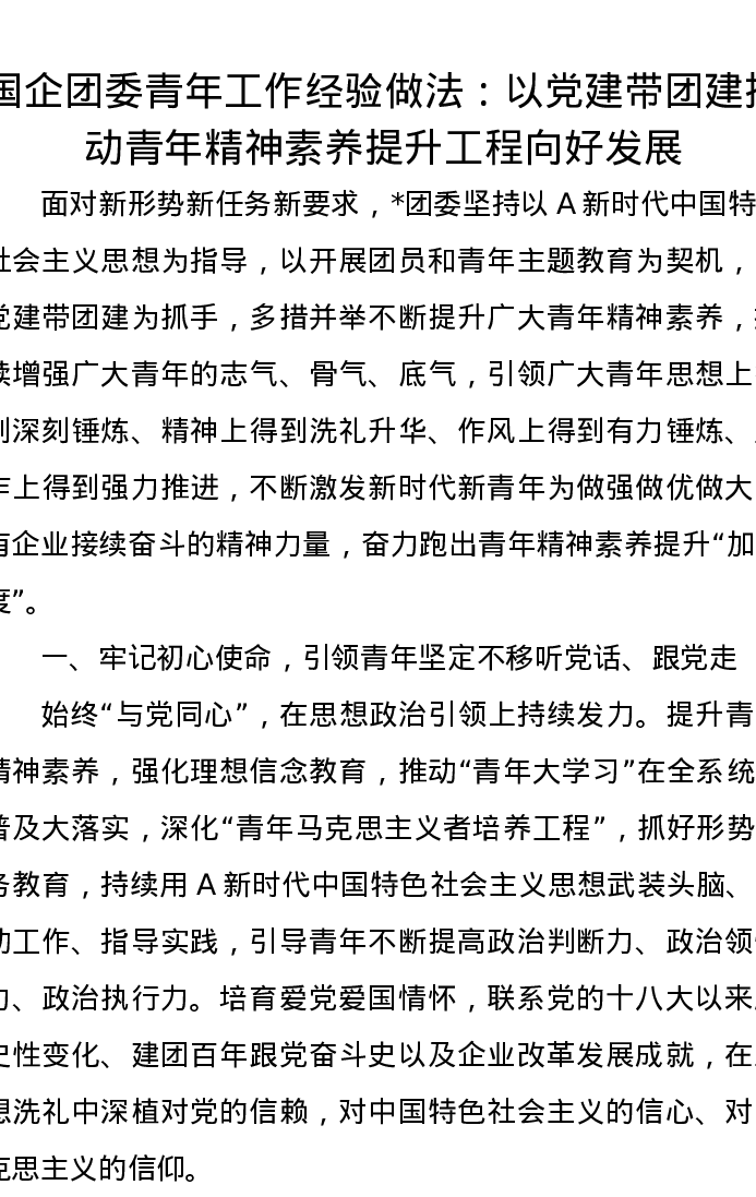 国企团委青年工作经验做法:以党建带团建推动青年精神素养提升工程向好发展