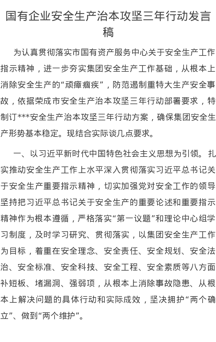 国有企业安全生产治本攻坚三年行动发言稿