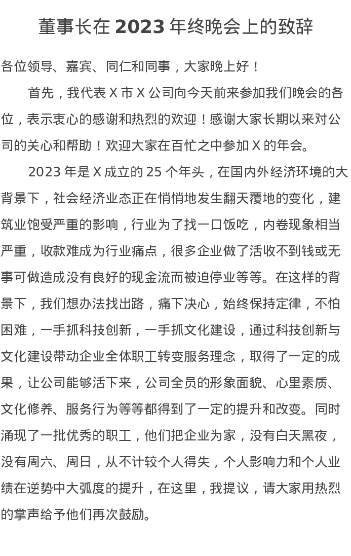 董事长在2023年终晚会上的致辞