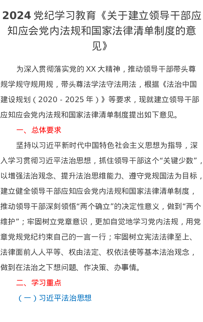 2024党纪学习教育《关于建立领导干部应知应会党内法规和国家法律清单制度的意见》