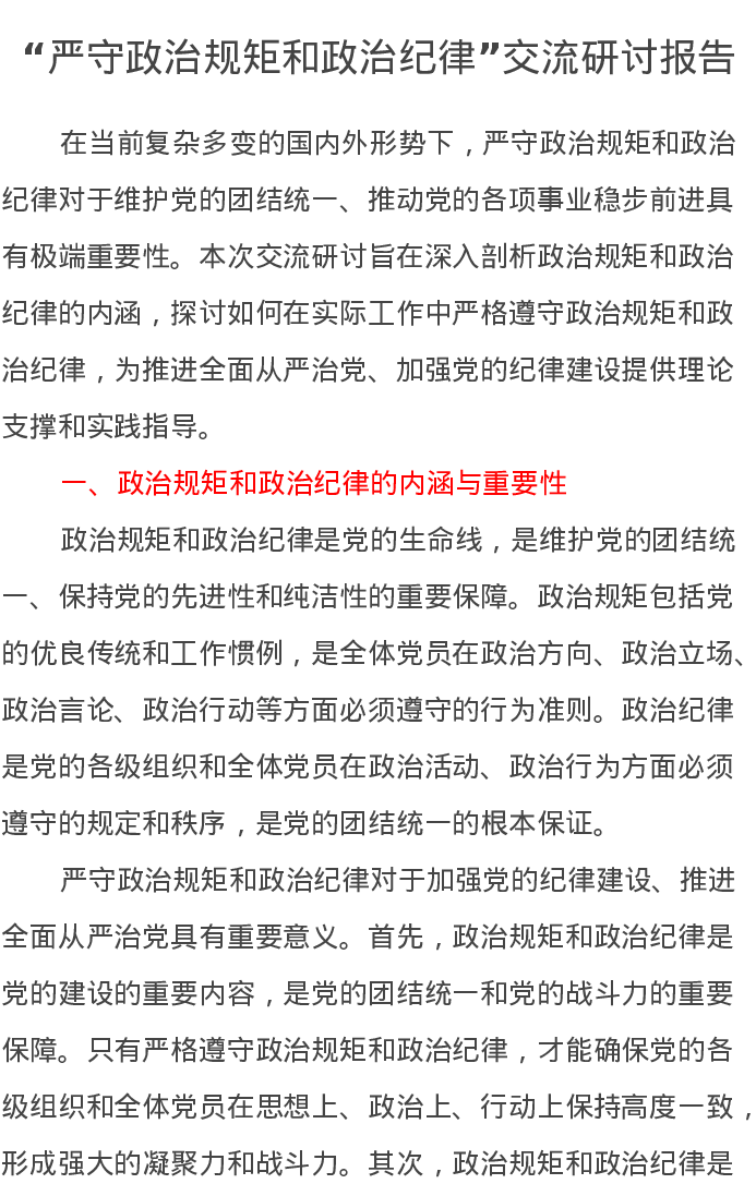 “严守政治规矩和政治纪律”交流研讨报告