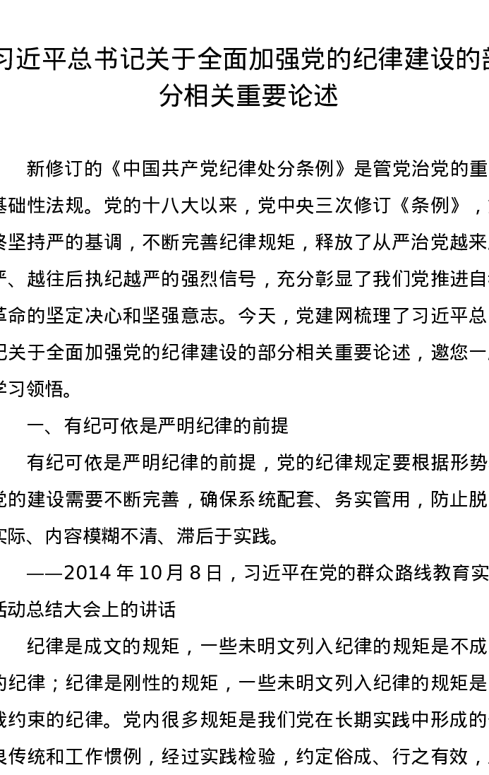 党纪学习教育∣01上级精神:08习近平总书记关于全面加强党的纪律建设的部分相关重要论述
