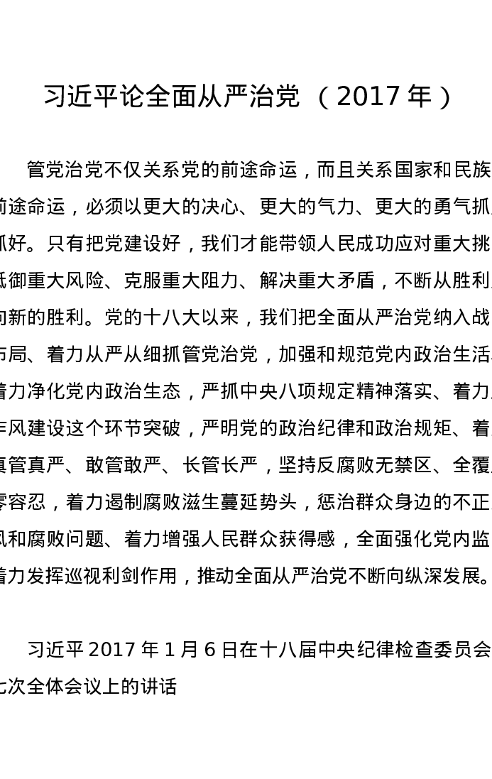 党纪学习教育∣01上级精神:12习近平论全面从严治党 (2017年)