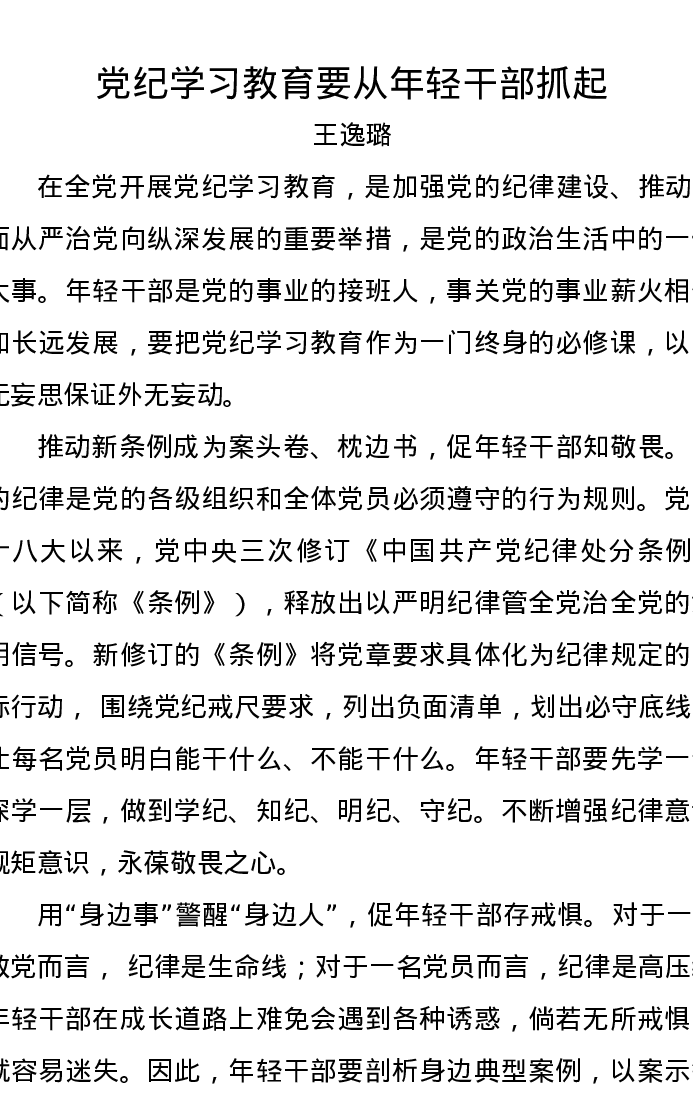 党纪学习教育∣06评论文章:党纪学习教育要从年轻干部抓起
