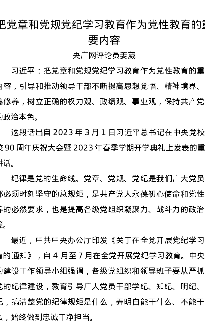 党纪学习教育∣06评论文章:把党章和党规党纪学习教育作为党性教育的重要内容