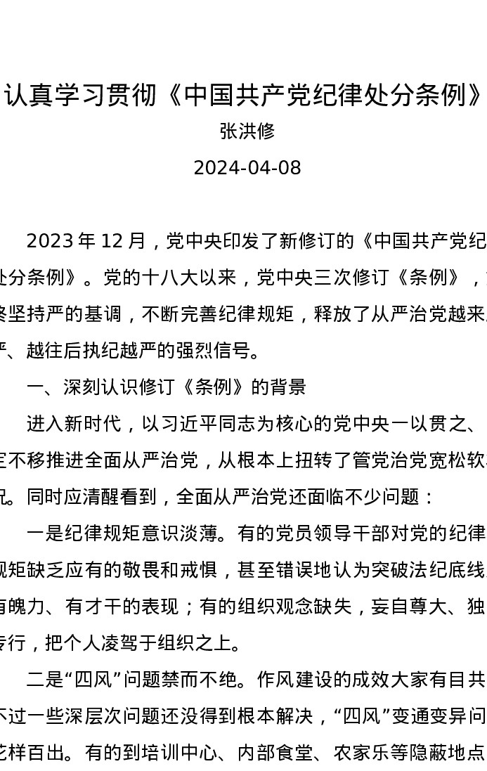 党纪学习教育∣08党课讲稿:认真学习贯彻《中国共产党纪律处分条例》(全文6000字)