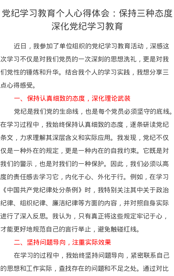 党纪学习教育个人心得体会:保持三种态度,深化党纪学习教育