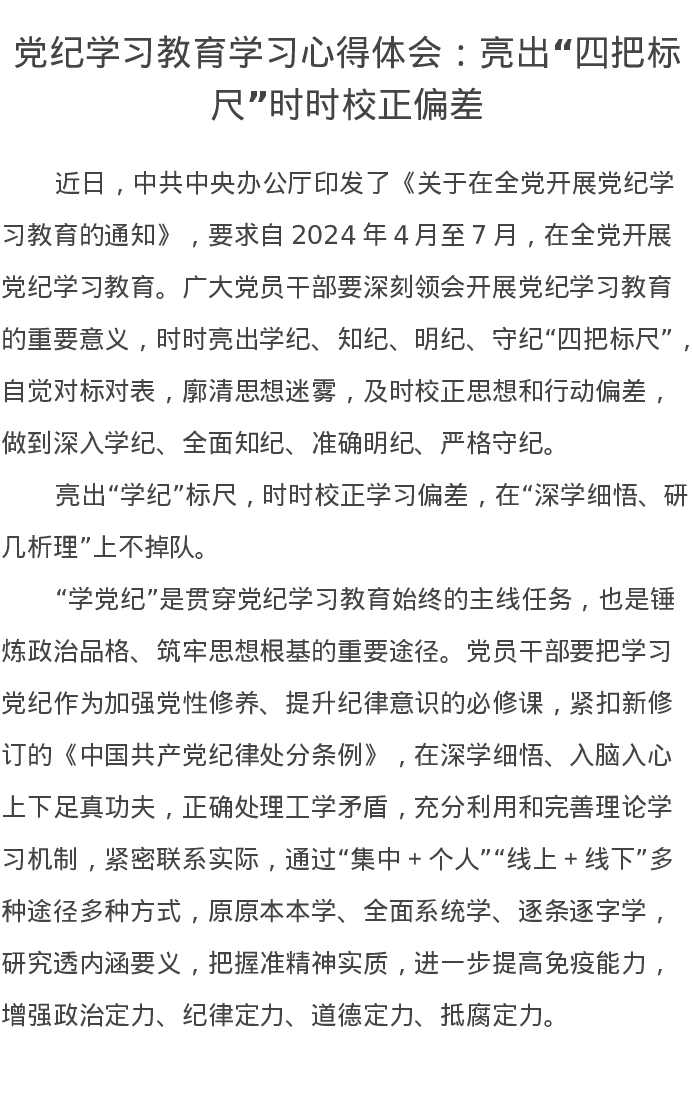 党纪学习教育学习心得体会:亮出“四把标尺”时时校正偏差