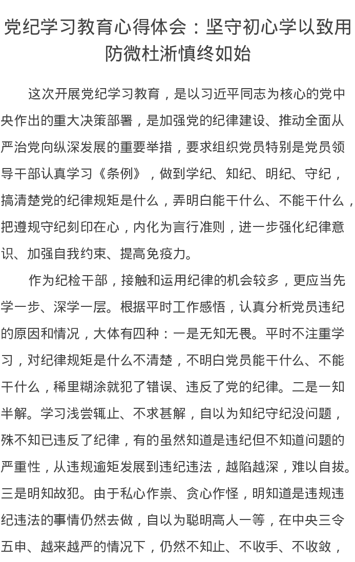 党纪学习教育心得体会:坚守初心学以致用防微杜淅慎终如始