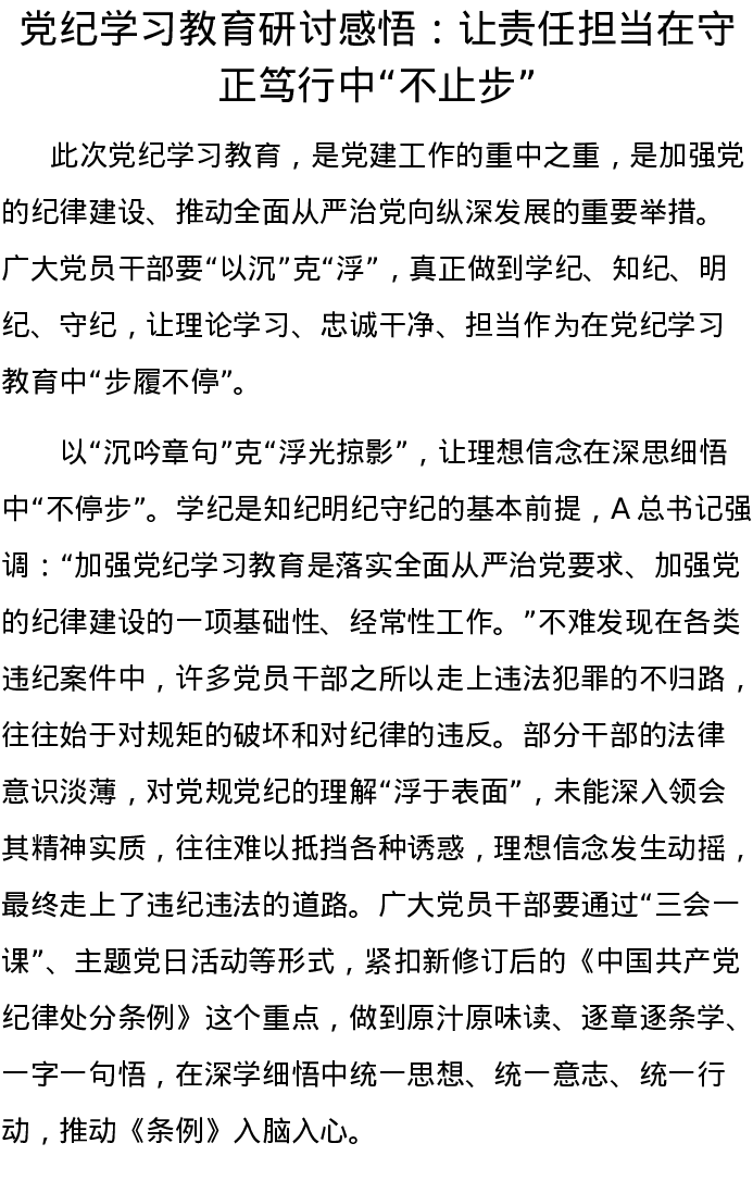 党纪学习教育研讨发言:让责任担当在守正笃行中“不止步”