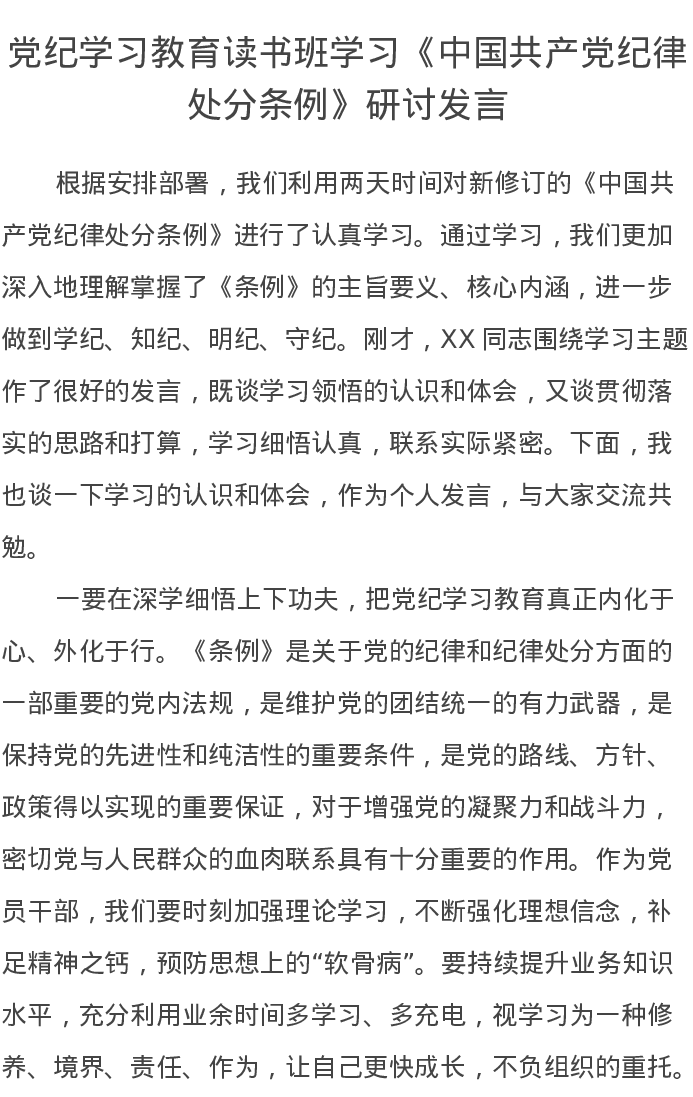 党纪学习教育读书班学习《中国共产党纪律处分条例》研讨发言9