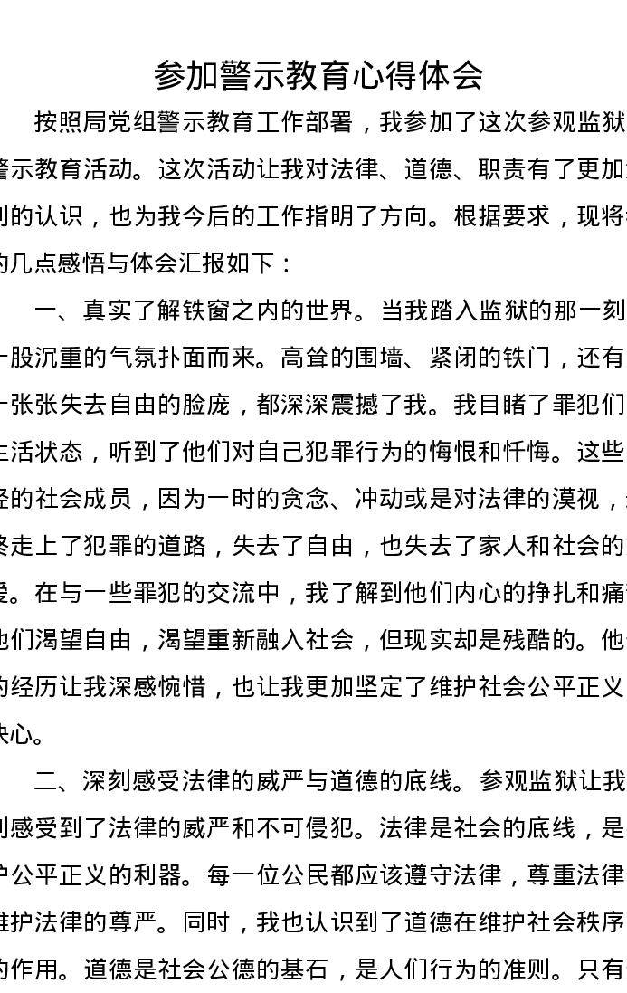 参加警示教育心得体会