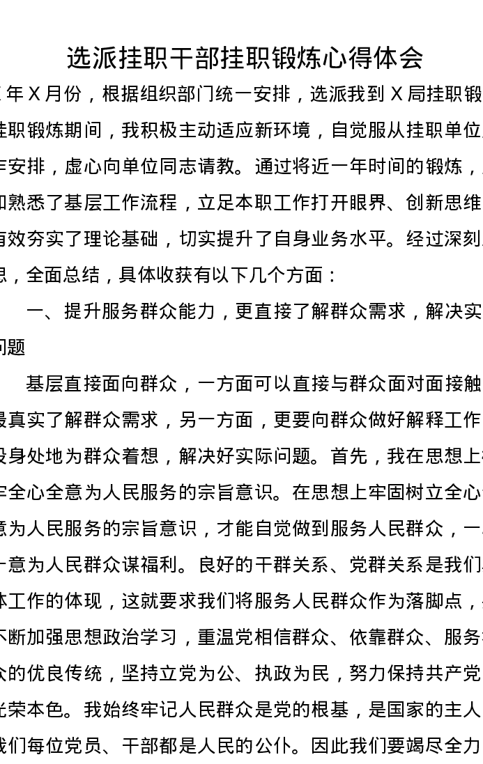 选派挂职干部挂职锻炼心得体会