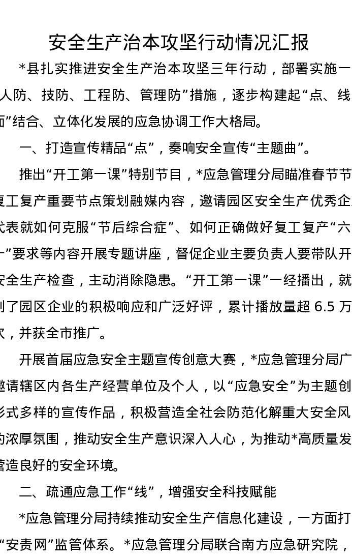 安全生产治本攻坚行动情况汇报