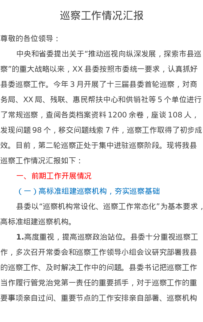 巡察工作情况汇报