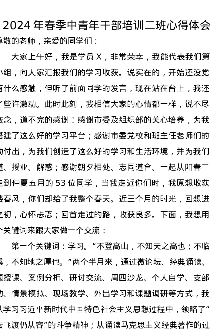 2024年春季中青年干部培训二班心得体会