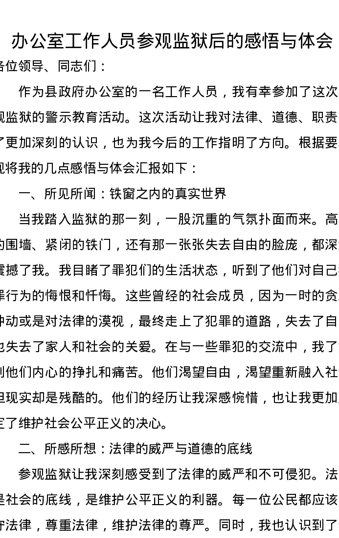 办公室工作人员参观监狱后的感悟与心得体会