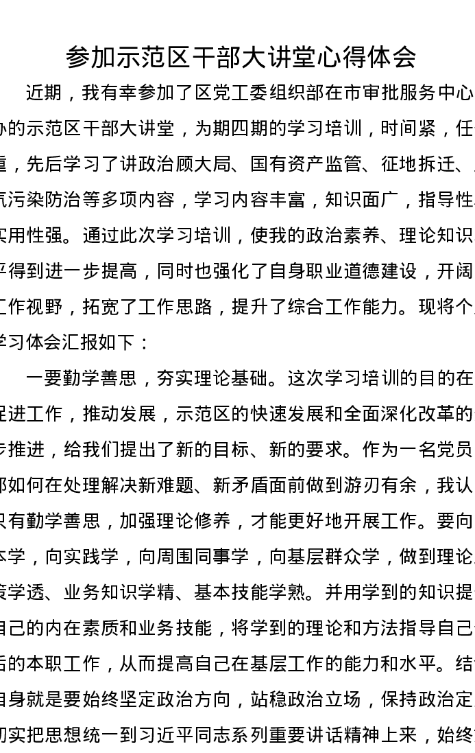 参加示范区干部大讲堂心得体会