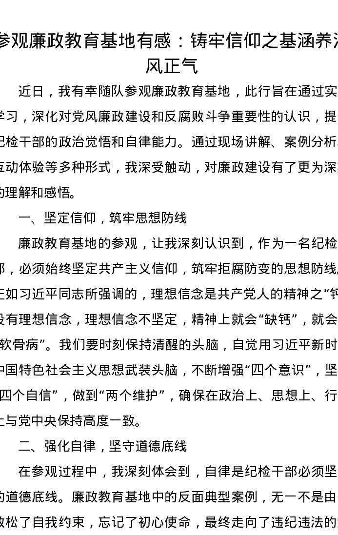 参观廉政教育基地有感:铸牢信仰之基涵养清风正气