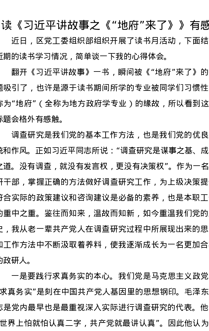 读《习近平讲故事之“地府”来了》有感(心得体会)