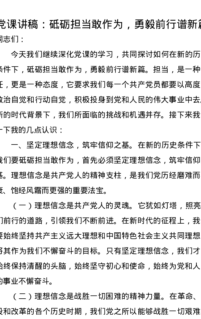 党课讲稿:砥砺担当敢作为,勇毅前行谱新篇