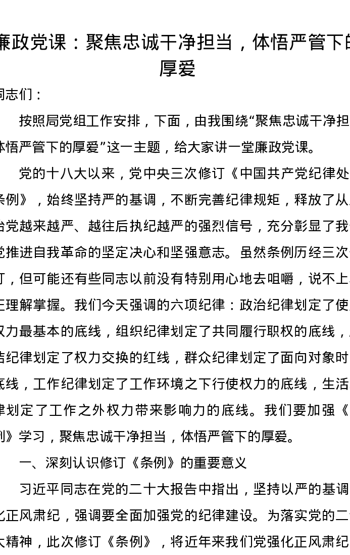 廉政党课讲稿:聚焦忠诚干净担当,体悟严管下的厚爱