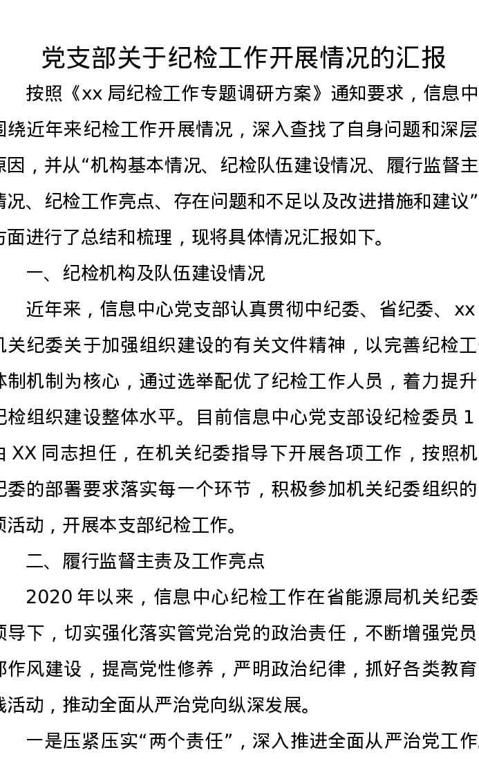 党支部关于纪检工作开展情况的汇报