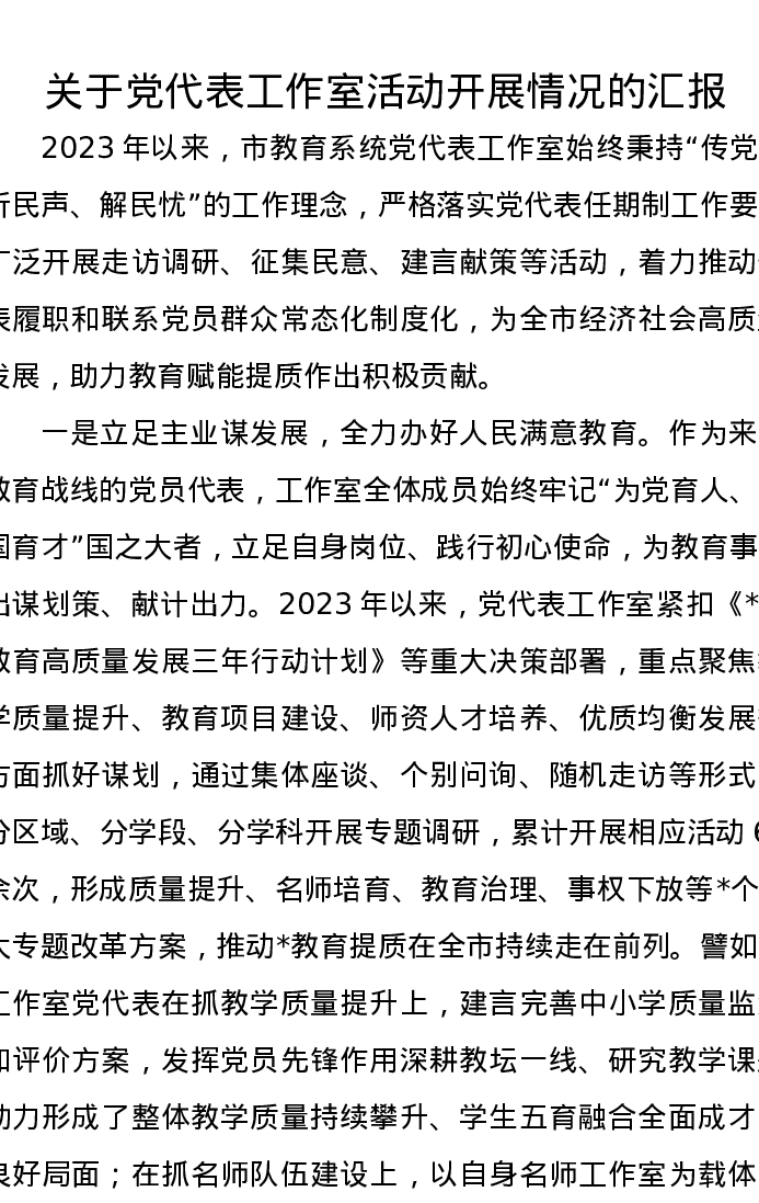 关于党代表工作室活动开展情况的汇报