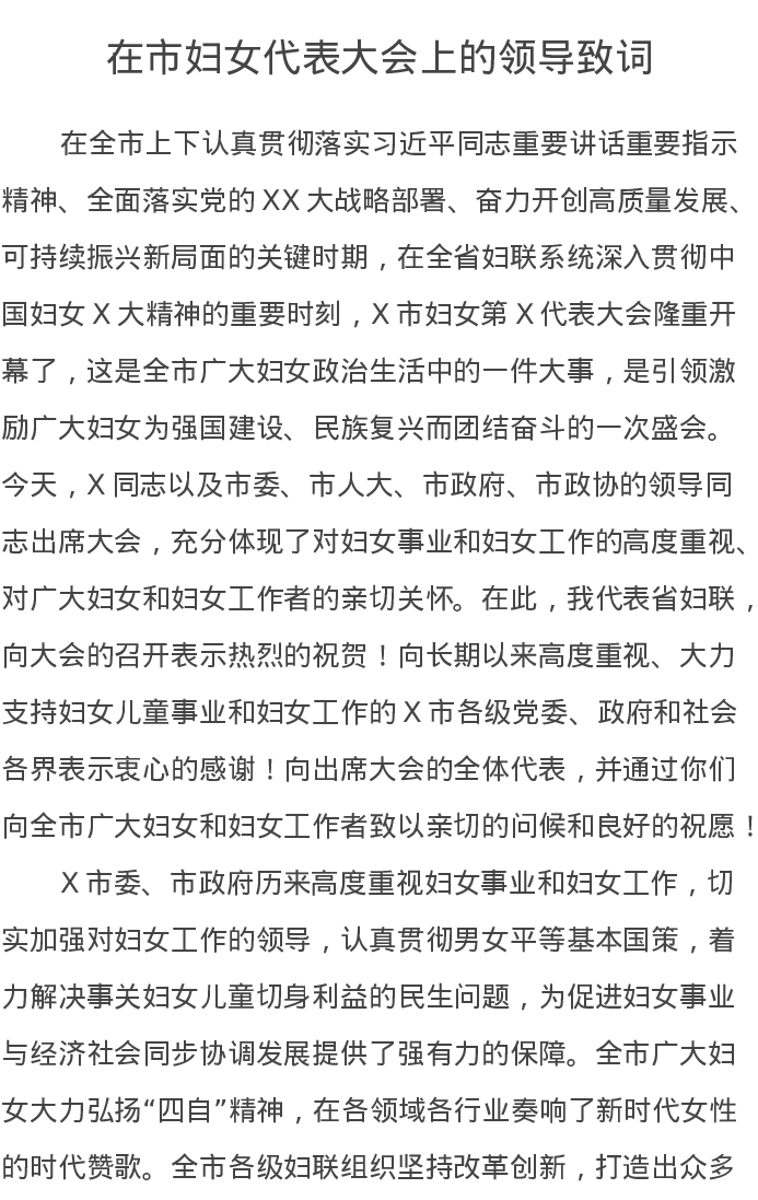 在市妇女代表大会上的领导致辞