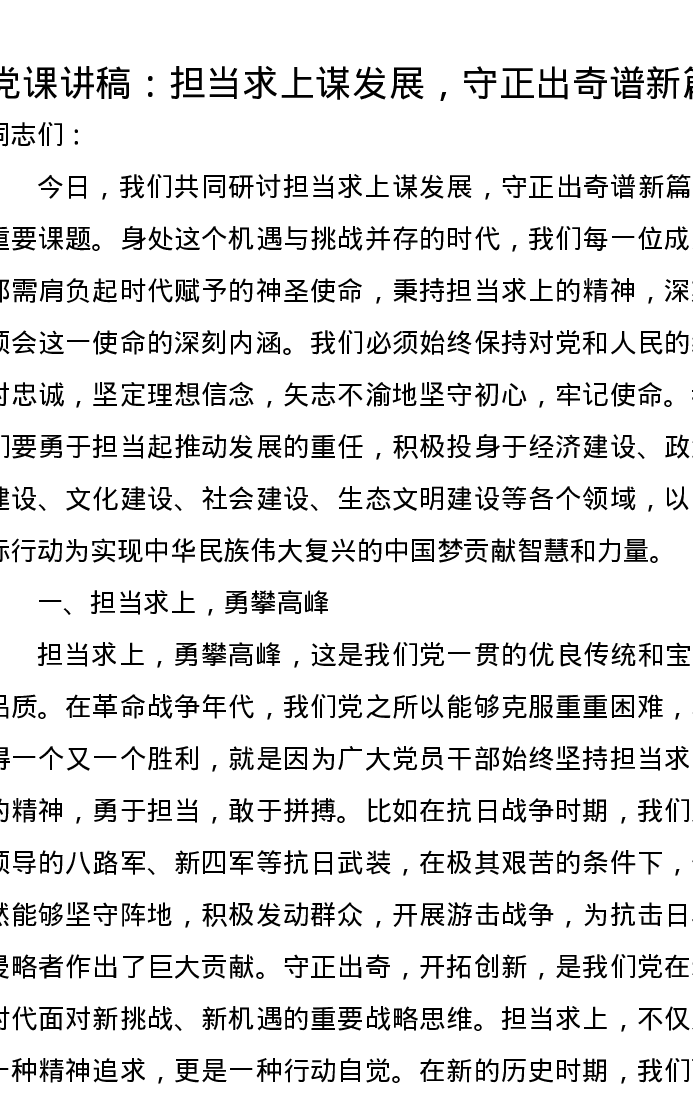 党课讲稿:担当求上谋发展,守正出奇谱新篇