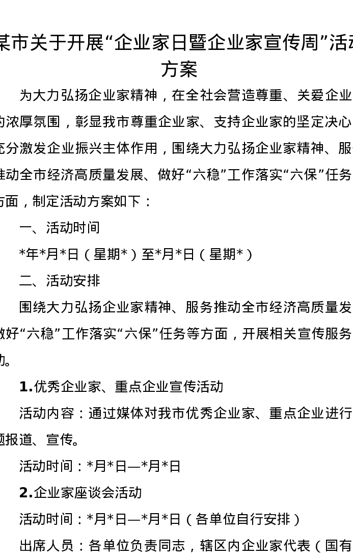 某市关于开展“企业家日暨企业家宣传周”活动方案