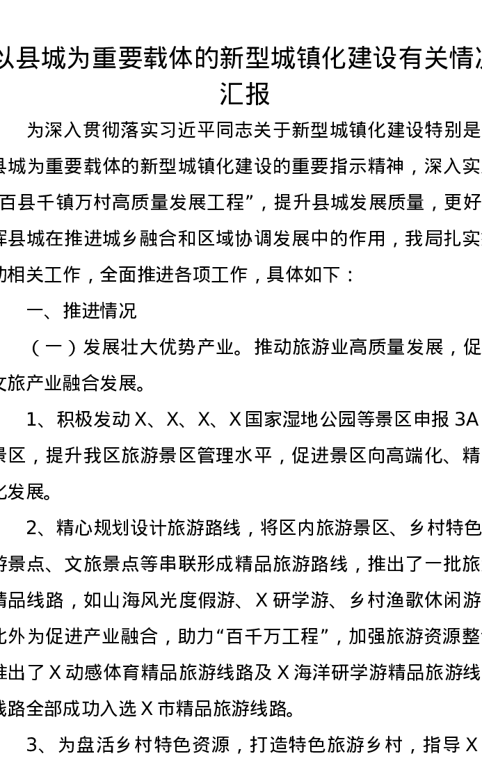 以县城为重要载体的新型城镇化建设有关情况汇报