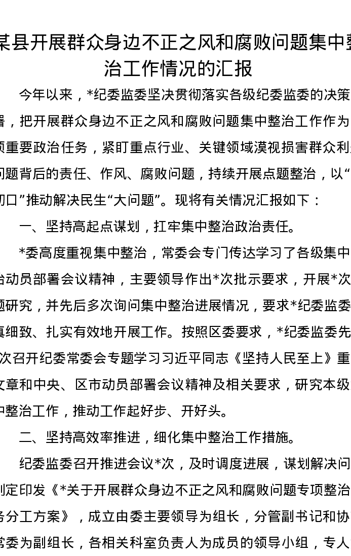 某县开展群众身边不正之风和腐败问题集中整治工作情况的汇报
