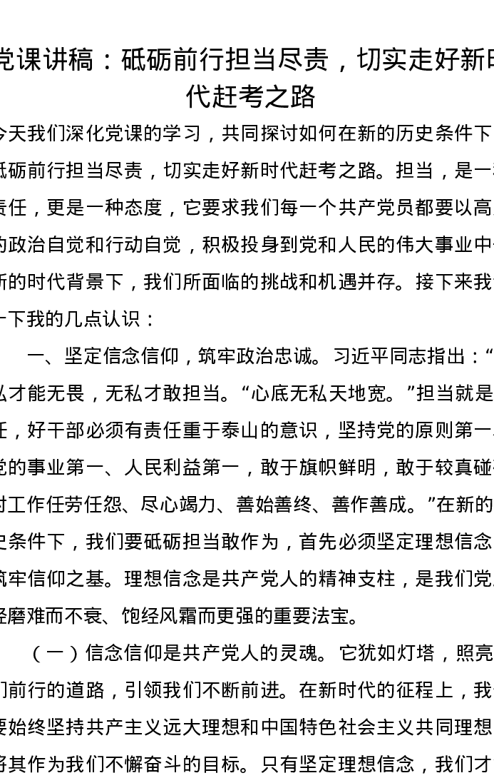 党课讲稿:砥砺前行担当尽责,切实走好新时代赶考之路