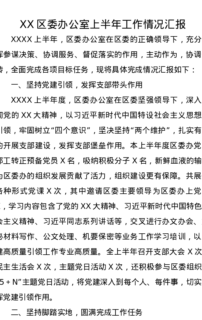 XX区委办公室上半年工作情况汇报