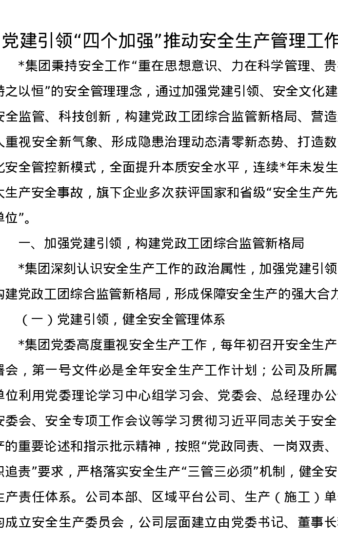 党建引领“四个加强”推动安全生产管理工作汇报
