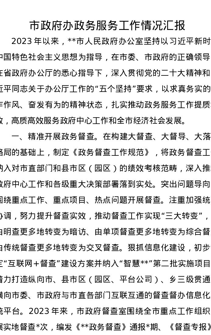 市政府办政务服务工作情况汇报