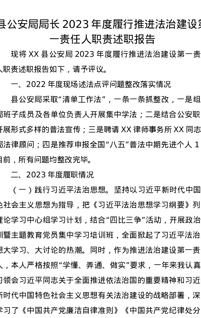 县公安局局长2023年度履行推进法治建设第一责任人职责述职报告